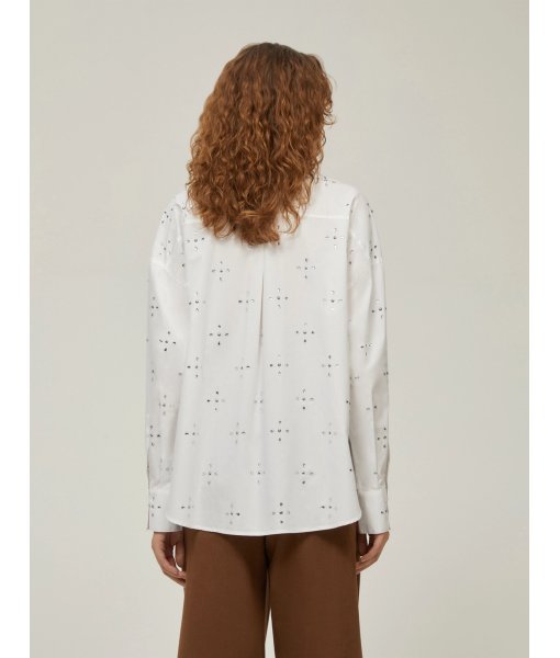 Ripresa dal guardaroba maschile, la camicia in popeline si arricchisce di tocchi scintillanti.
