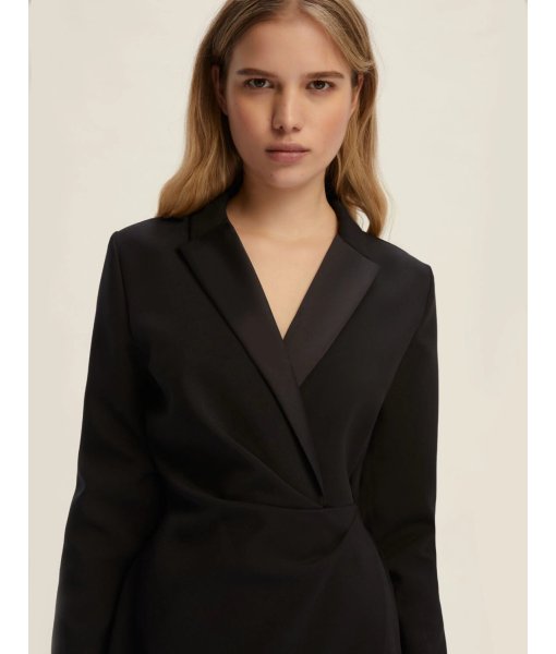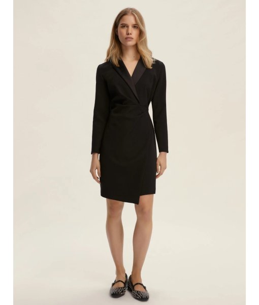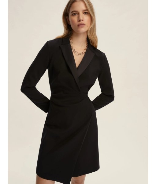 Con la sua linea avvolgente e il dettaglio in raso che illumina lo scollo a rever, questo abito incrociato è un'ode alla femminilità contemporanea. Elegante e deciso, si muove con disinvoltura tra impegni quotidiani e serate mondane.