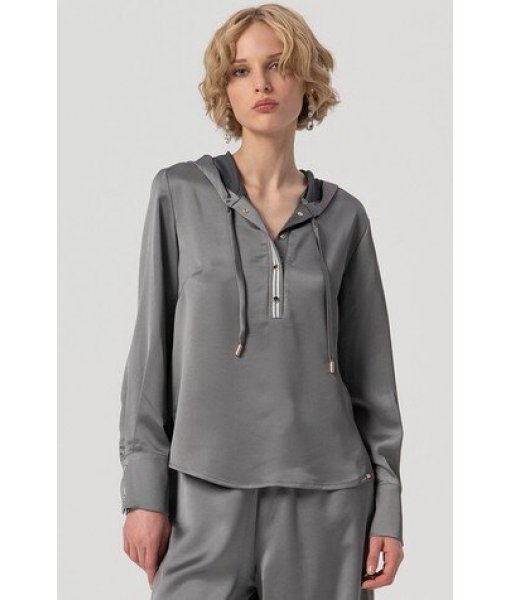 BLUSA IN RASO CON CAPPUCCIO E BOTTONI