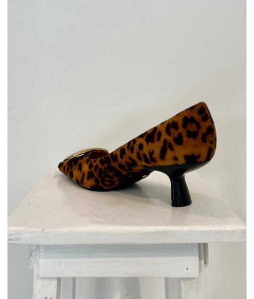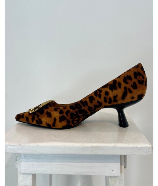 DECOLLETE A PUNTA CON TACCO 5 E FIBBIA ORO