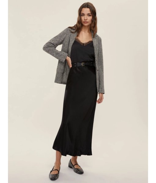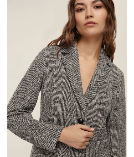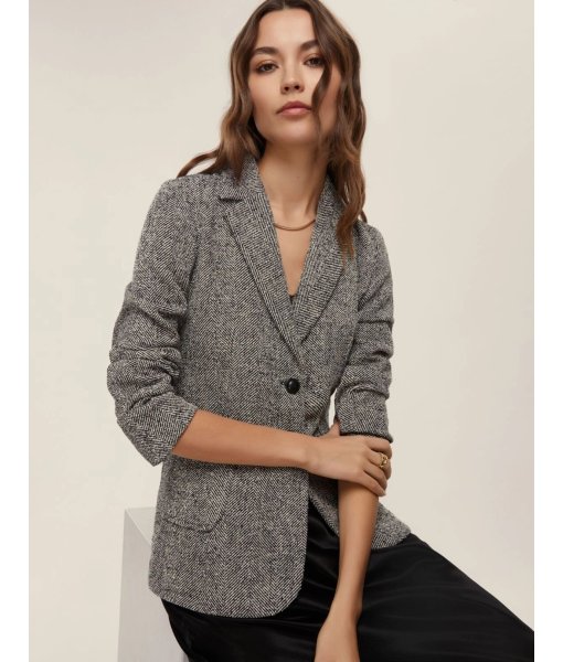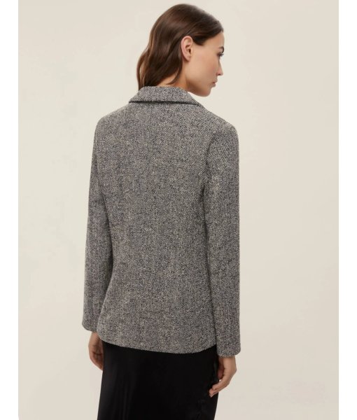 Il fascino british della giacca in stuoia colpisce al cuore grazie alle linee femminili, al punto vita in evidenza e al tocco informale delle tasche applicate. Indossala su top effetto lingerie per un contrasto sensuale.