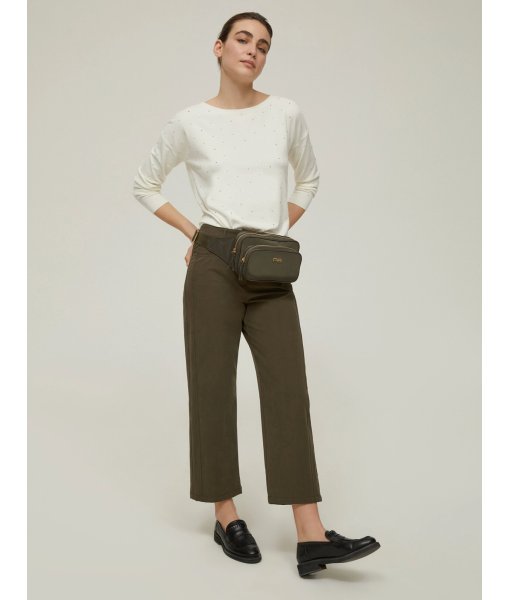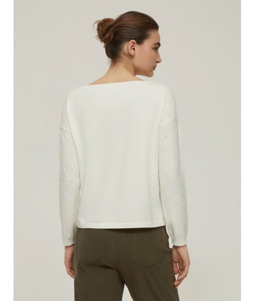 Un pizzico di glamour può dare una svolta al look: ecco la maglia dal design pulito, arricchita da micro-borchie scintillanti.