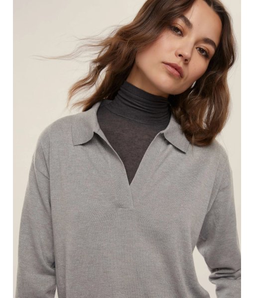 Trasforma il tuo look casual con il tocco brillante della maglia con lurex: linee morbide e rilassate, spalla scesa, collo a polo per un mix di dettagli che ti accompagnano nei momenti più informali.