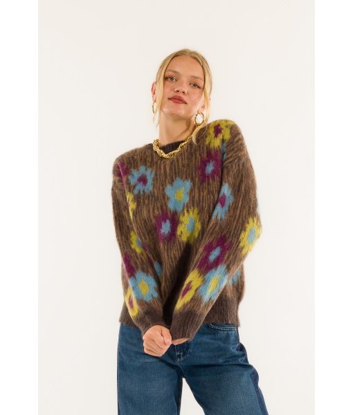 MAGLIA GIROCOLLO MACULATO E FIORI