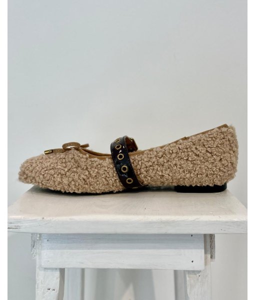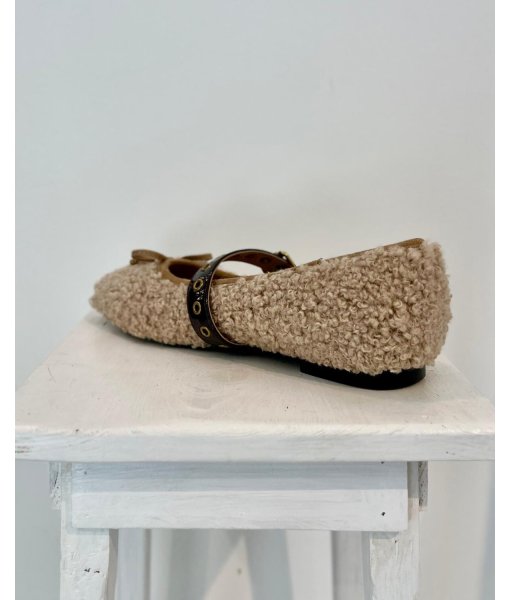 BALLERINE EFFETTO TEDDY CON FIBBIA IN VERNICE