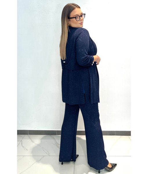 Pantalone glitterato gamba dritta con elastico in vita