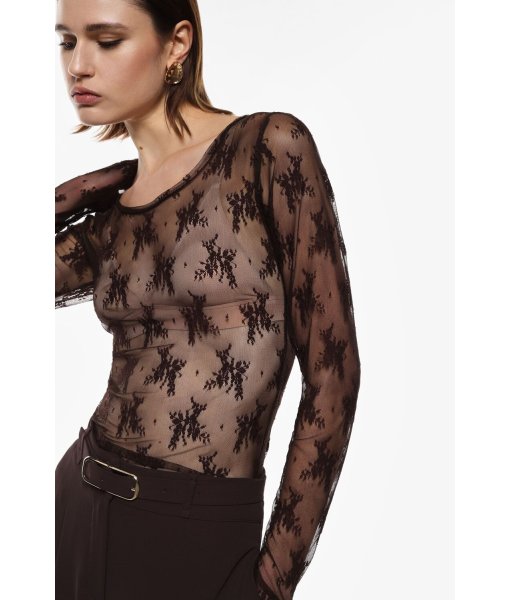 MAGLIA IN PIZZO TRASPARENTE A MANICHE LUNGHE
